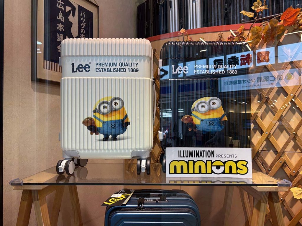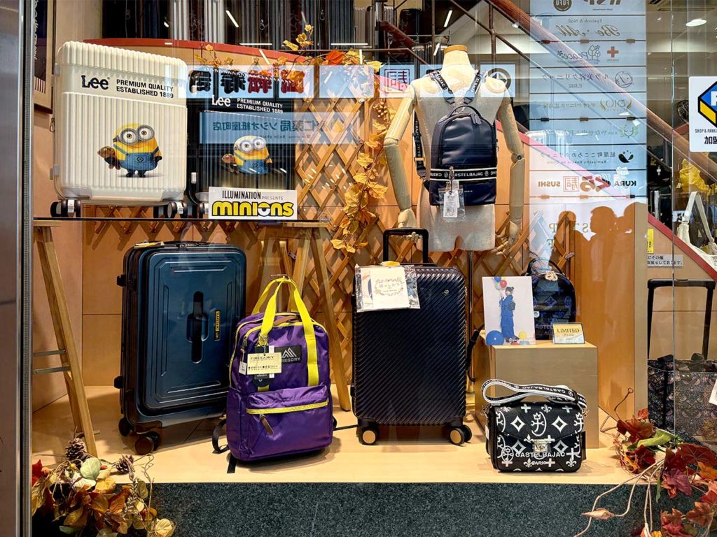 【店頭ディスプレイを変えました】ミニオンキャリーケース 少し遅い紅葉の季節の到来です
